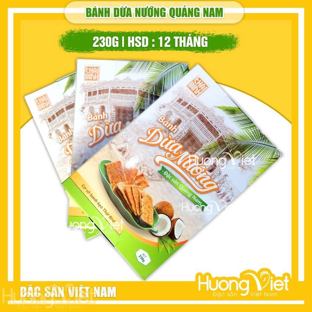 Bởi vậy, ai đi Đà Nẵng, Hội An về mà trên tay cầm hộp Bánh dừa nướng Thái Bình là biết người đó sành ăn, biết thưởng thức rồi đó. Hộp bánh được thiết kế đẹp mắt. Mang đậm dấu ấn địa phương với hình ảnh Chùa Cầu Hội An và rặng dừa xanh mát. Bên trong hộp là 16 gói nhỏ được đóng gói riêng biệt. Giúp bảo quản bánh được lâu, giữ trọn độ giòn và rất tiện lợi để chia sẻ. Mua hộp bánh làm quà, là mình đang trao cho nhau cái vị ngọt bùi, cái giòn tan của nắng, của gió. Và hơn hết là cái tình người Quảng Nam thiệt thà, chất phác.