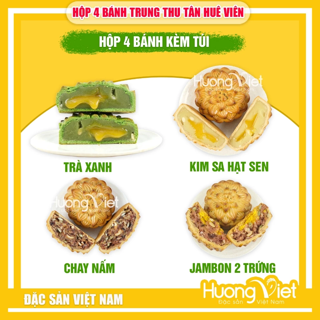 🎁 Hộp Quà Trung Thu Trăng Vàng 4 Bánh Tân Huê Viên HV07