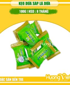 Những trái dừa sáp vùng Cầu Kè xưa giờ đã trở thành đặc sản của người dân Trà Vinh nơi đây. Từ cái tinh túy đó, nhà Vicosap đã khéo léo gói ghém thành những viên kẹo dừa sáp lá dứa thơm thanh. Viên kẹo nhỏ xinh ấy cứ lặng lẽ đi vào lòng người bởi cái vị béo ngậy, mềm mịn mà chẳng loại kẹo dừa nào sánh kịp.