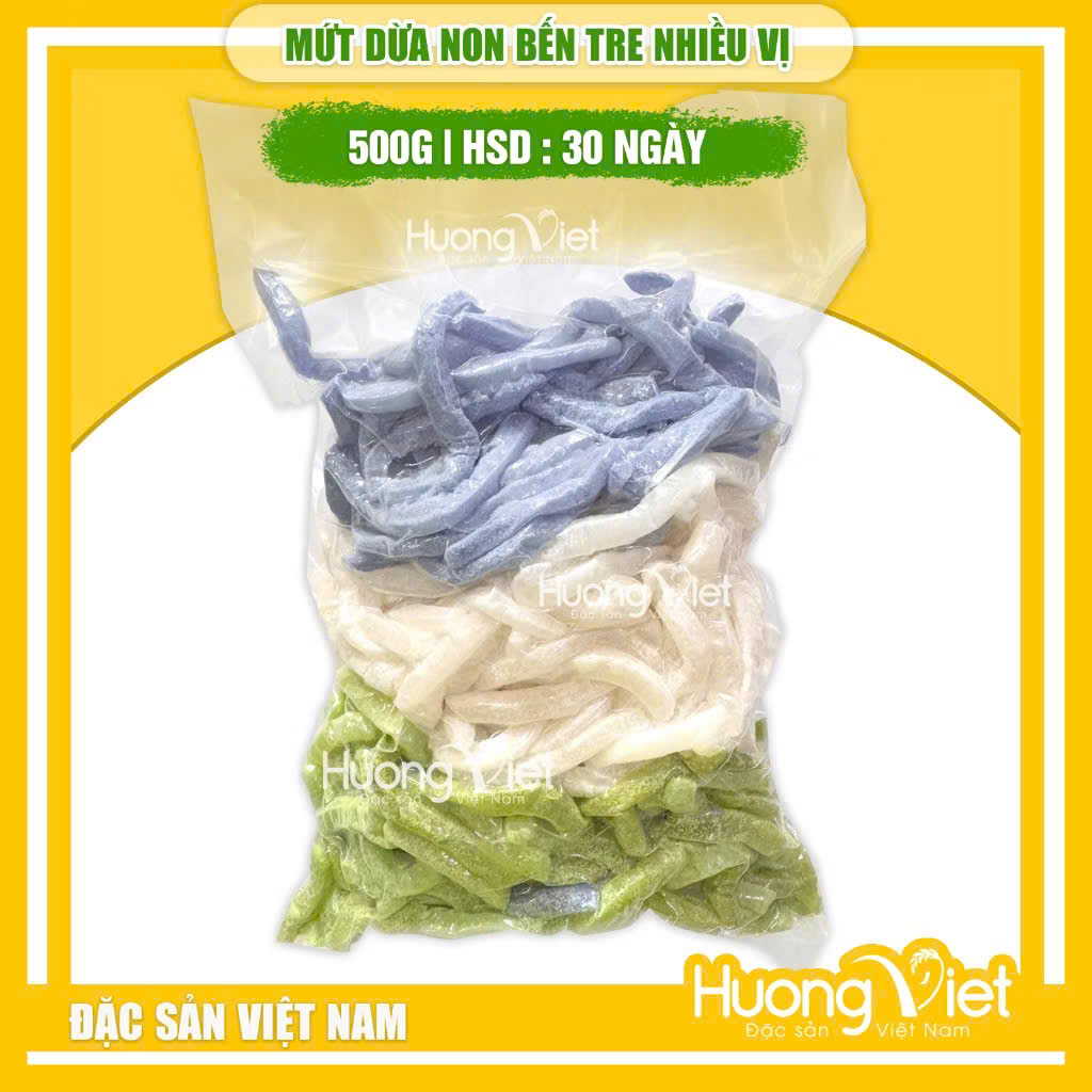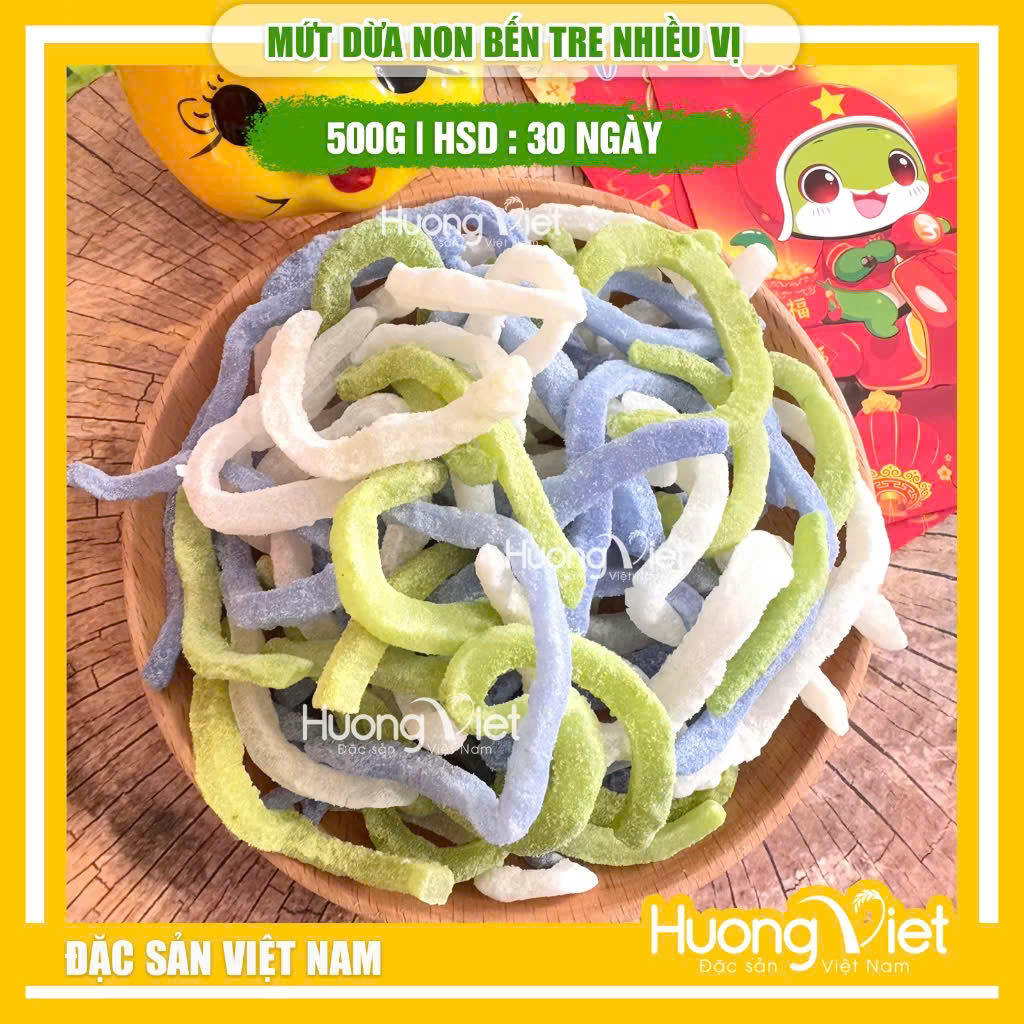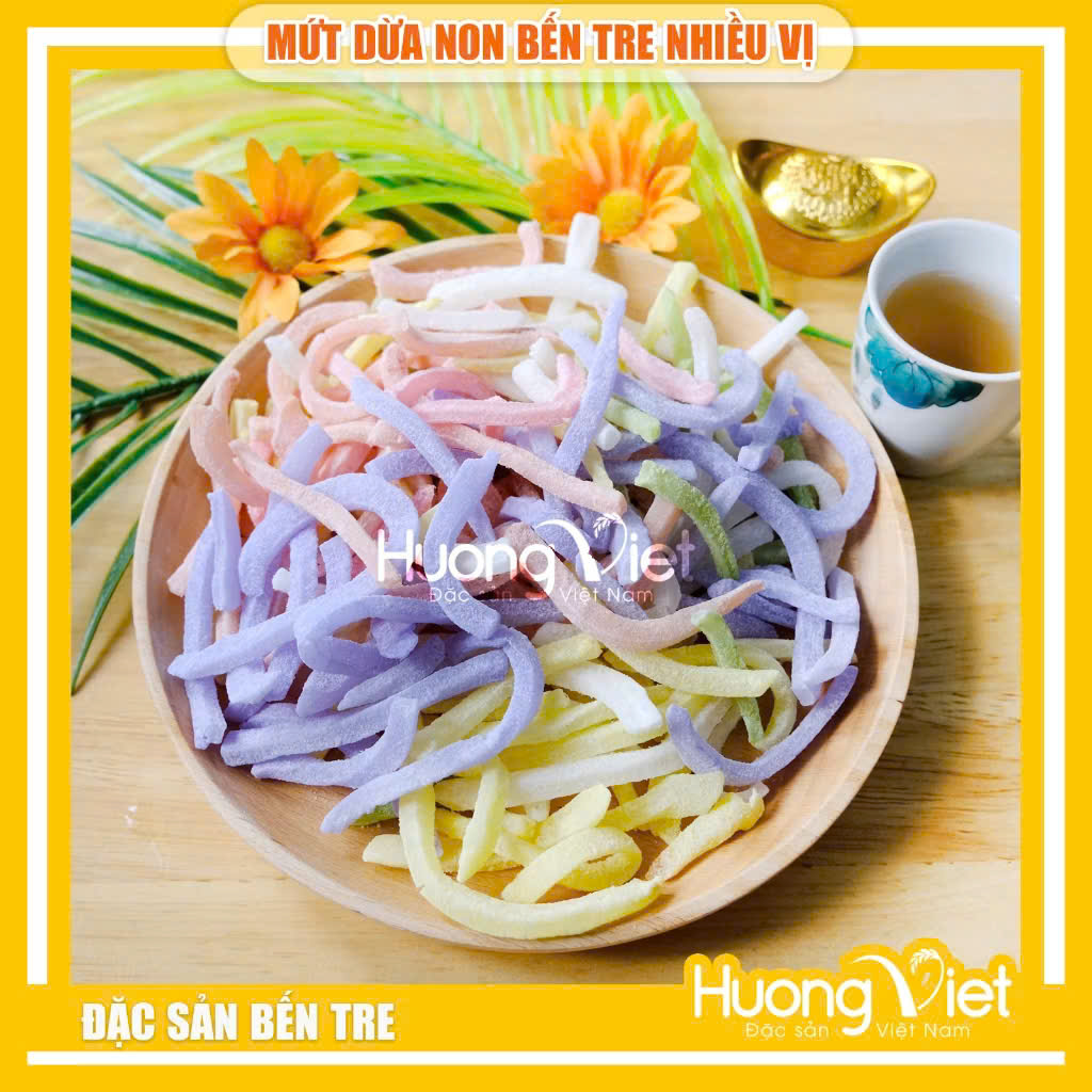 Mứt dừa non Bến Tre thập cẩm (500g) – Màu tự nhiên, dẻo thơm